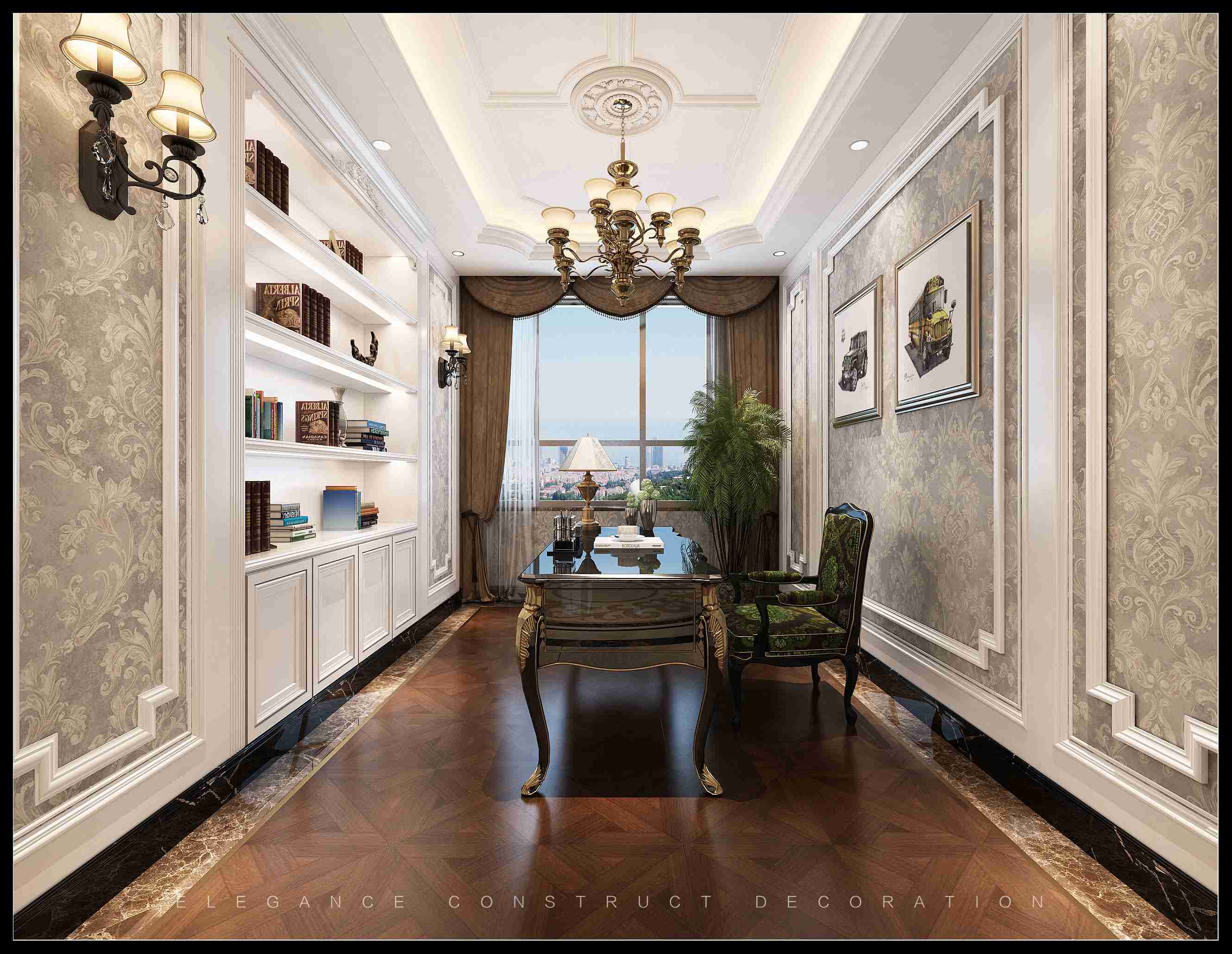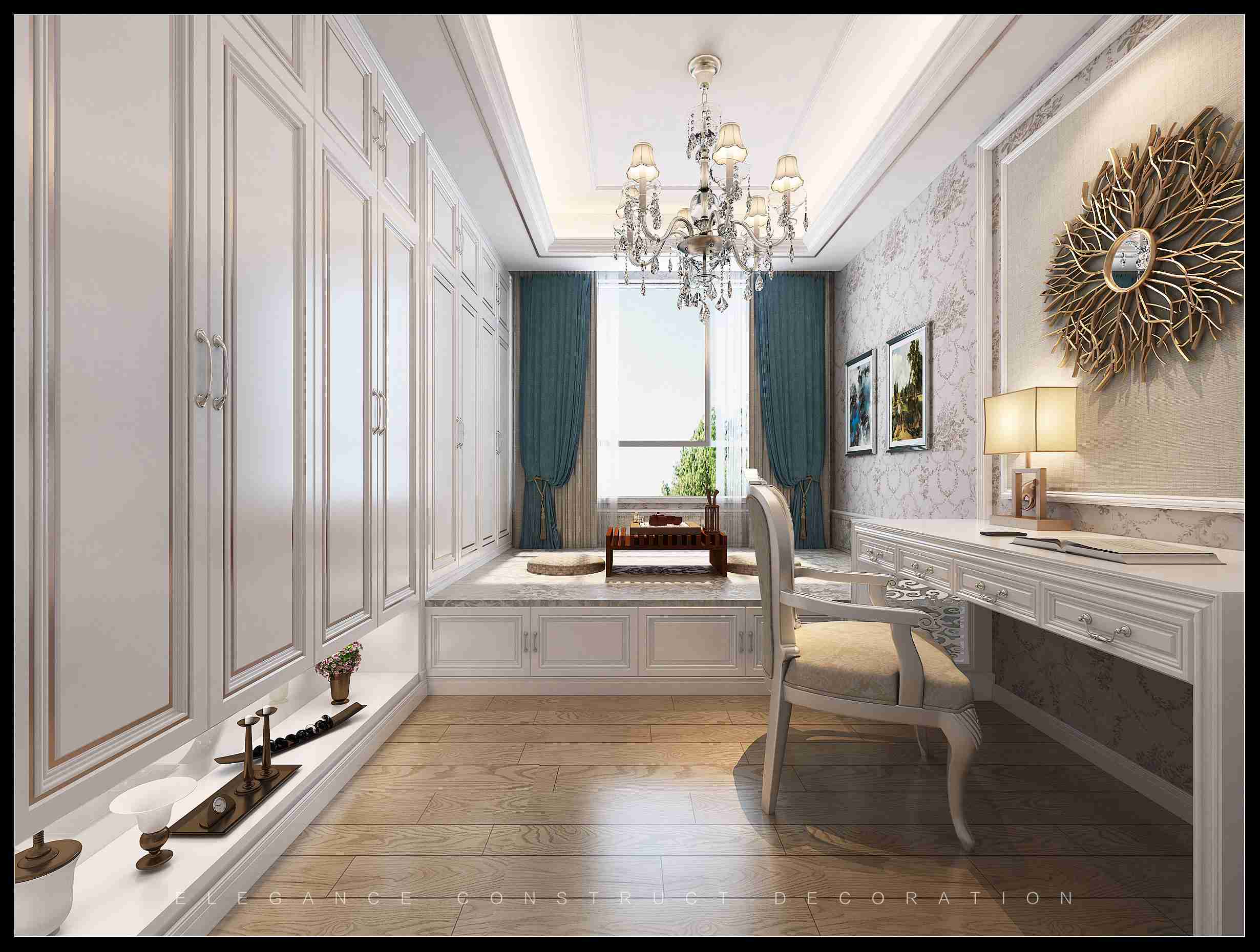 書房選用古典元素的家具以及配飾,莊重而沉穩(wěn),這里就是主人的專屬放松和學(xué)習(xí)空間。