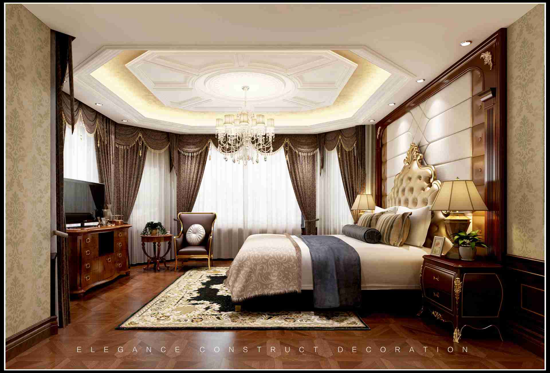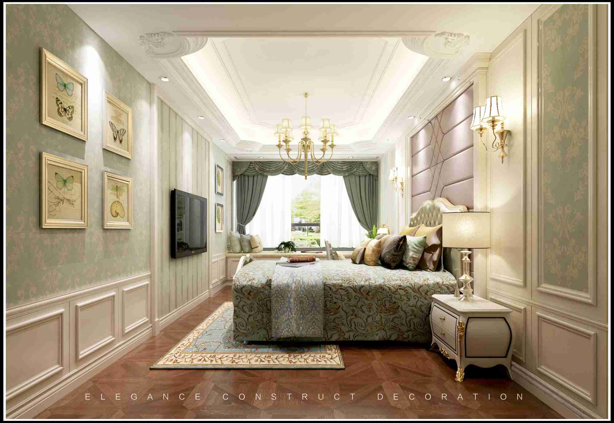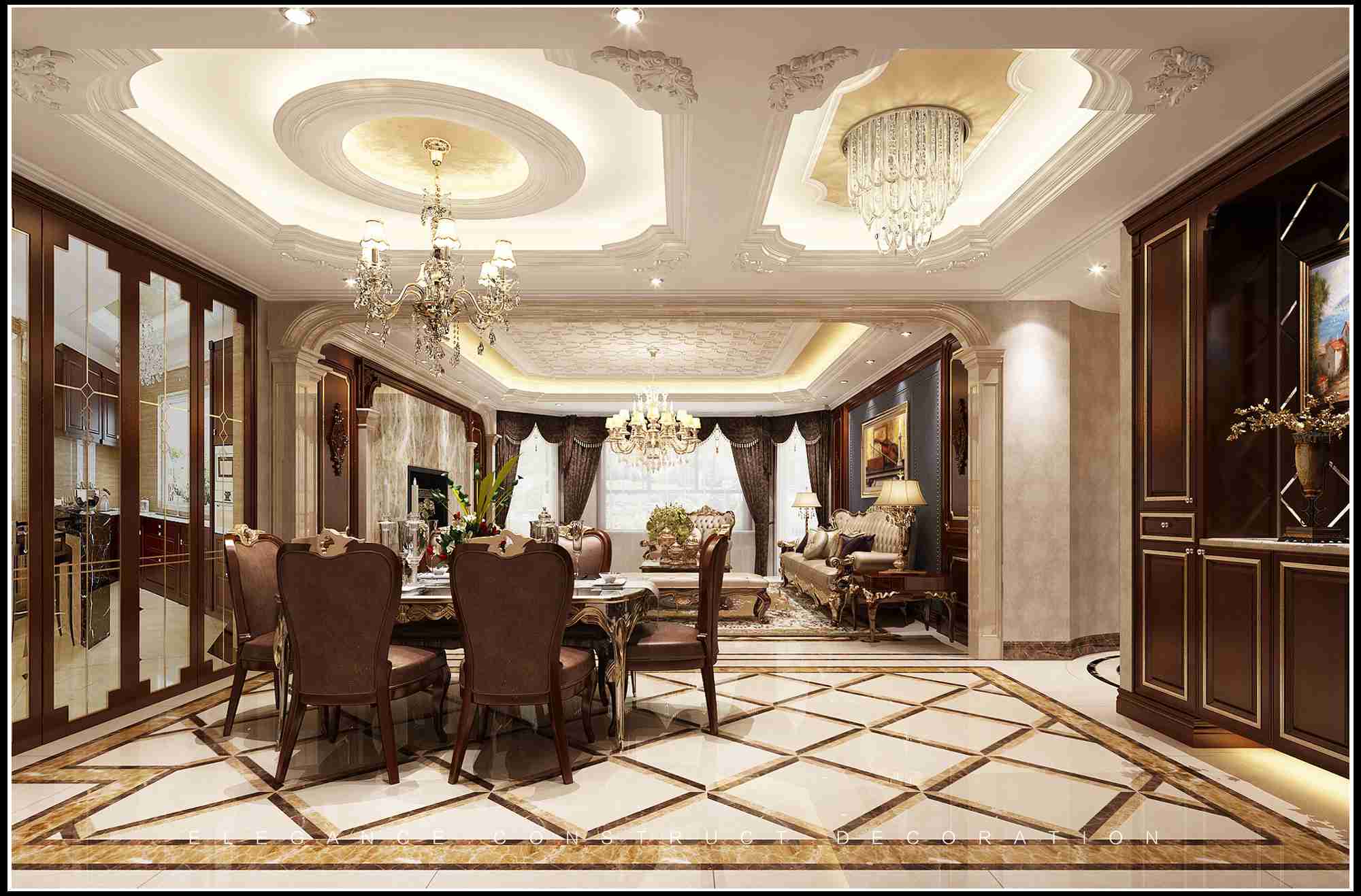 本案在整個(gè)設(shè)計(jì)中,雖然整個(gè)別墅空間歐式藝術(shù)氛圍濃厚,但是在以歐式格調(diào)為主的同時(shí),利用空間的建筑造型加重空間的美學(xué)氣息,并極大地方便了生活起居。整體設(shè)計(jì)秉承著放松、舒適的原則