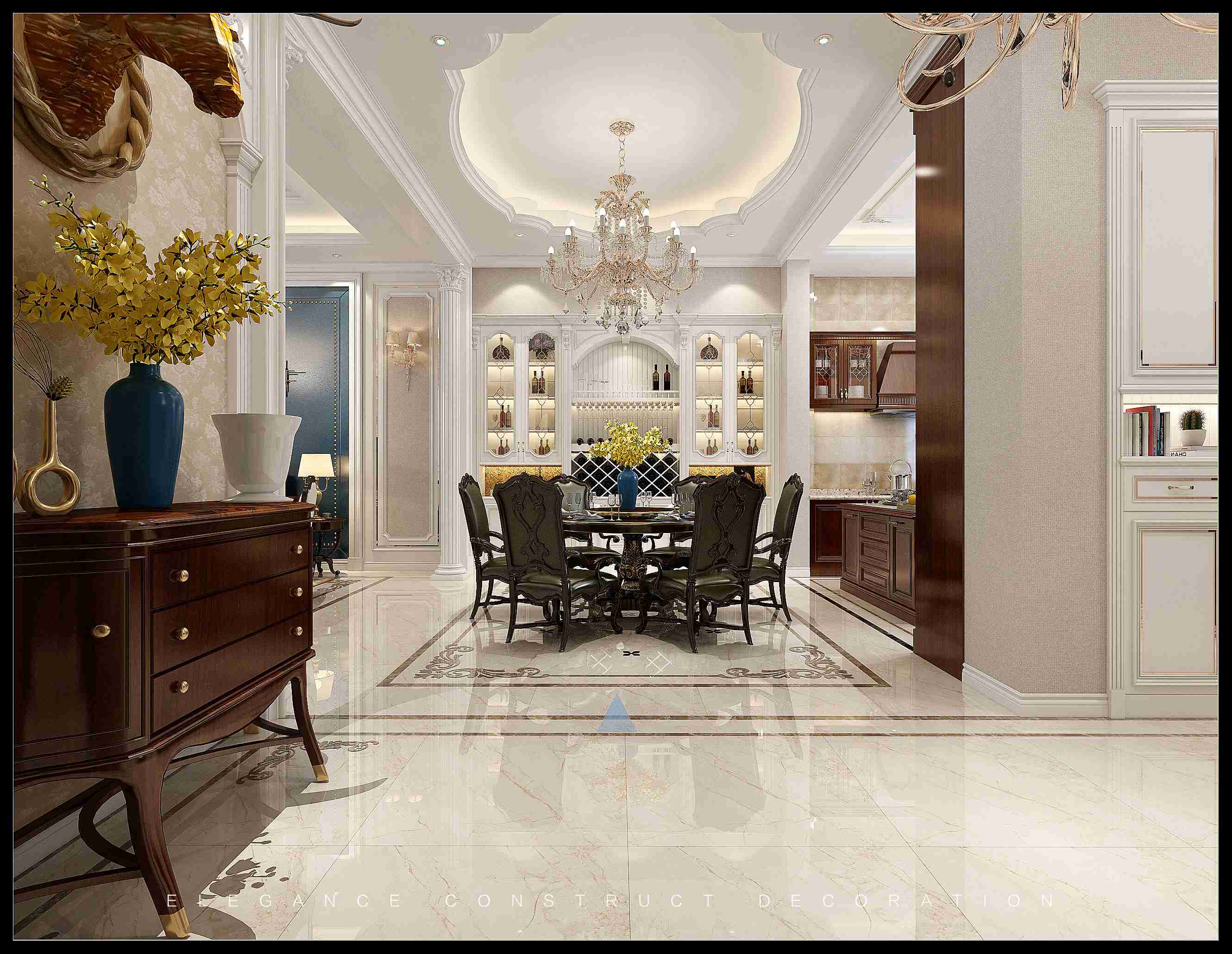 餐廳:整體空間與客廳相互協(xié)調(diào),整體空間色調(diào)和諧、溫馨。餐桌擺放綠植、花束,很好的調(diào)劑餐廳空間氛圍。