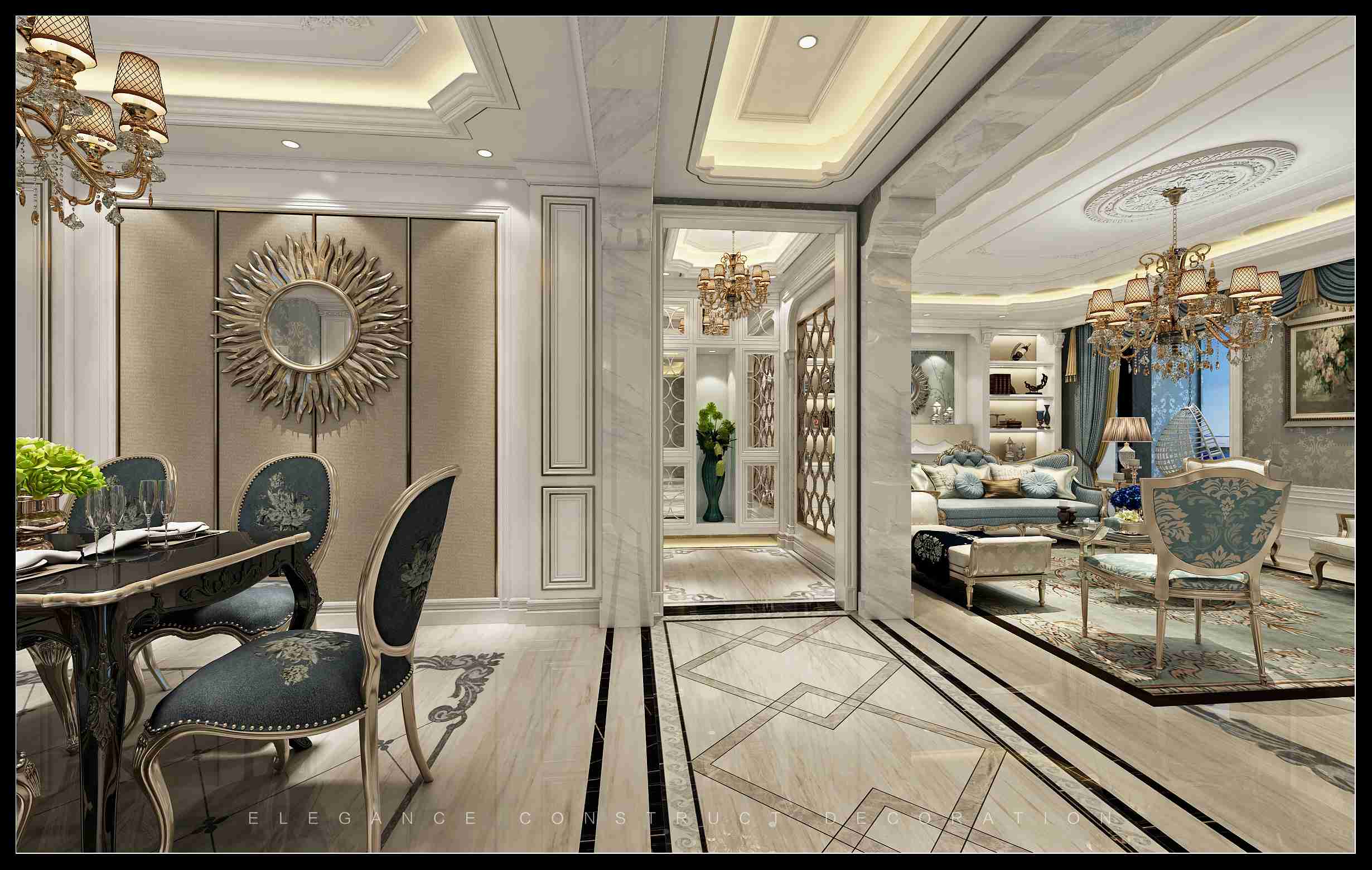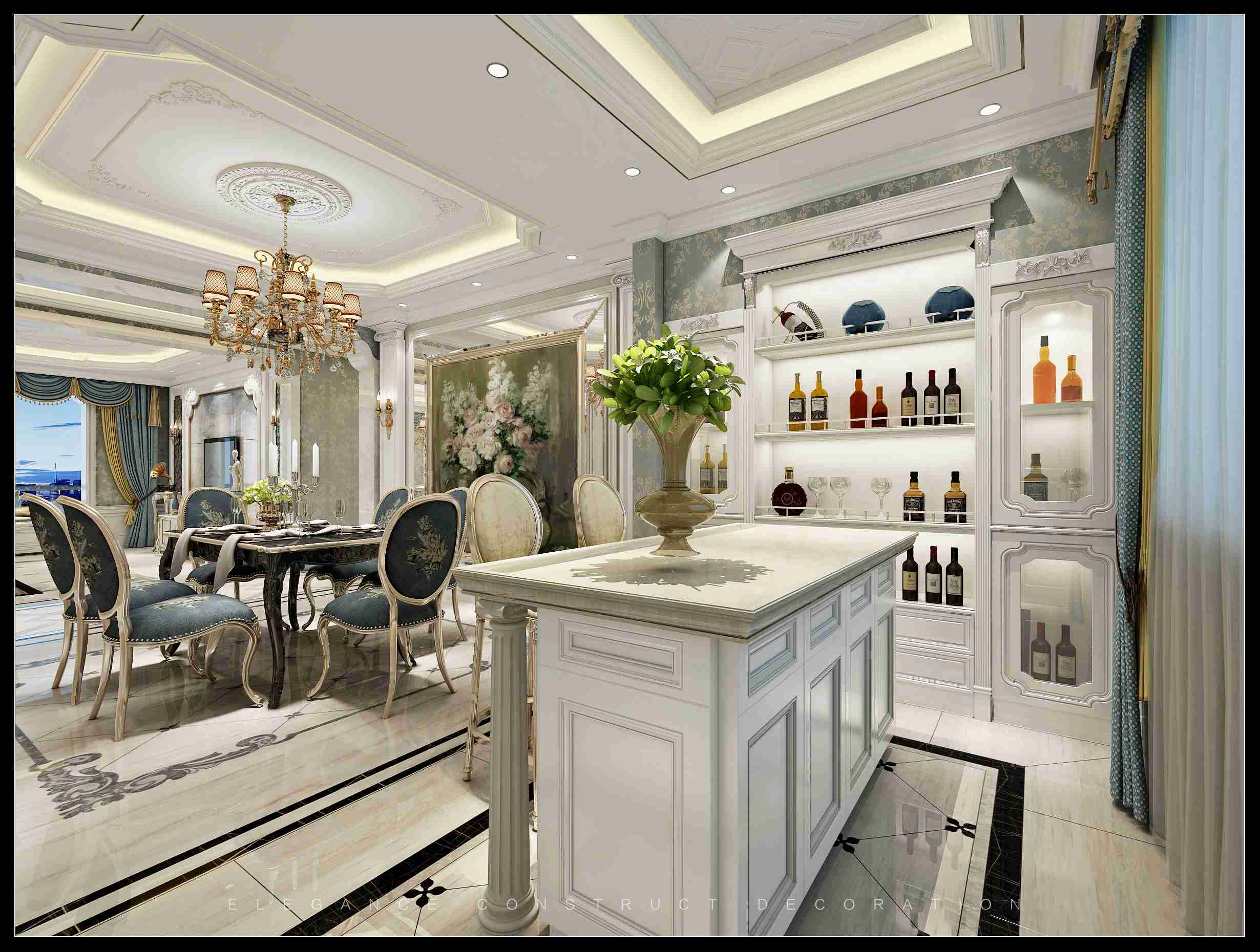 空間在細(xì)節(jié)上顯露簡約雅致的藝術(shù)氣息,雅致的掛畫與餐桌上印刻著的自然紋路。風(fēng)鈴般輕盈的水晶燈飾下,一種法式典雅的恬靜躍然于空間中。
