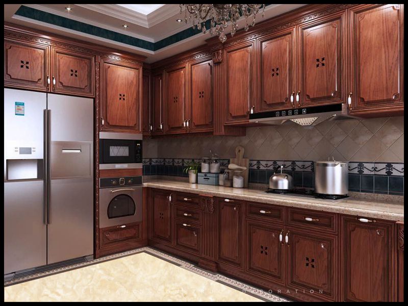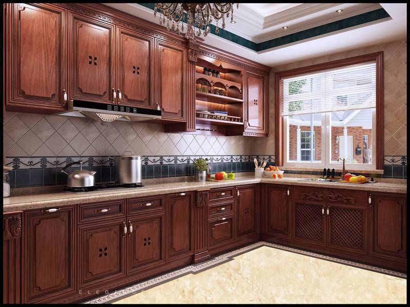 本案采用獨(dú)立的廚房,廚房整體設(shè)計(jì)采用紅木制作,沉穩(wěn)大氣氣質(zhì)非凡。