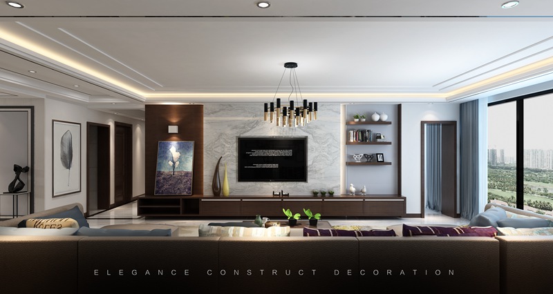 本案是祥云花園的200平大平層,戶型空間方正,南北通透,各個空間都明亮寬敞。動靜功能分區(qū)明確。風格定義為現(xiàn)代風格。地面大板滿鋪,墻面大面積白色乳膠漆。電視墻為整板式中花白大理石為主,理石左邊設計為整板式護墻板,右邊設計插墻式造型隔板。同時設計造型電視柜從左到右銜接電視墻的護墻板,理石及隔板。整個電視墻效果大氣而不空洞。