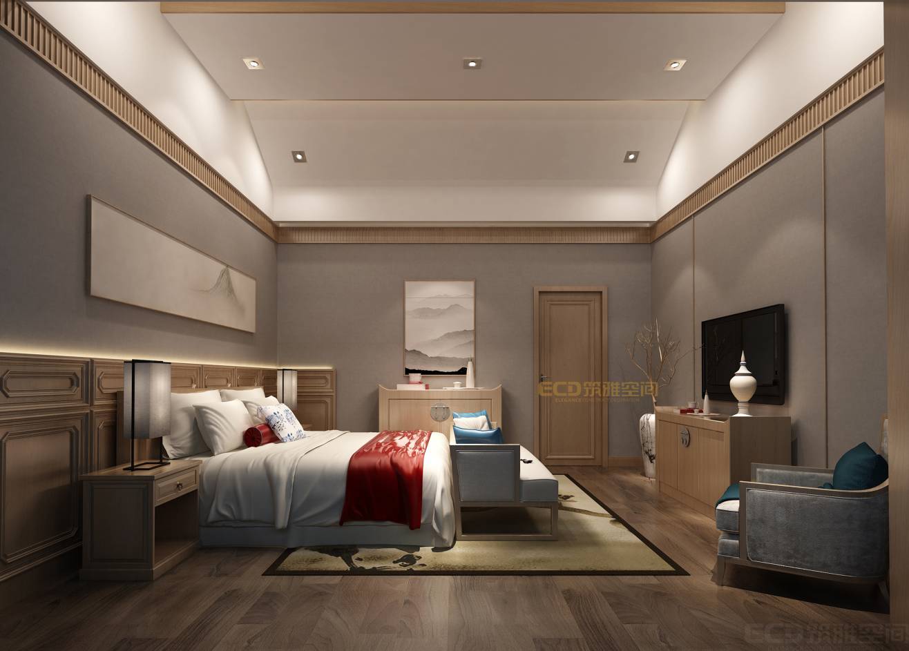 在設(shè)計(jì)中,以禪意為基調(diào),融入自然山水元素,通過木頭、石頭等本身材料色調(diào),打造大自然本身的色彩。給居住者帶來(lái)更多禪意悠然雅致、自然放松的度假體驗(yàn)!