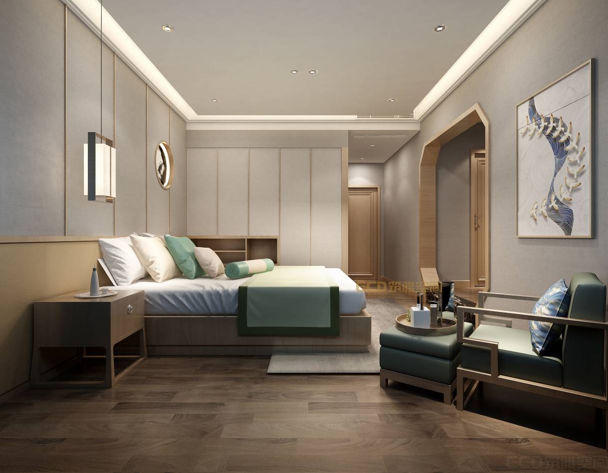 本案最終風(fēng)格定位為禪意中式。一說到中式,在很多人的印象里都是傳統(tǒng)中式特有的色彩深沉、厚重、太多雕花、繁瑣,那么如何打造一個(gè)去繁就簡(jiǎn)、休閑放松的體驗(yàn)?