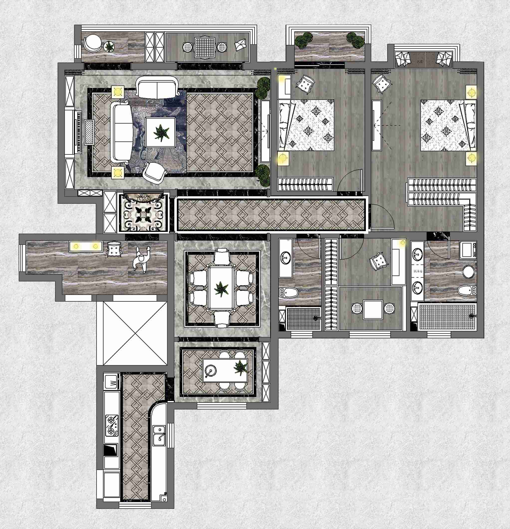 “到處皆詩(shī)境,隨時(shí)有物華”。本案定為新中式設(shè)計(jì)風(fēng)格,整套方案通過(guò)造景與色彩搭配,...