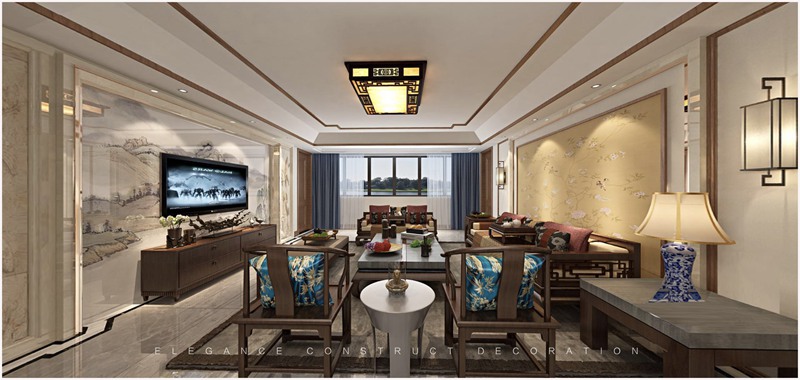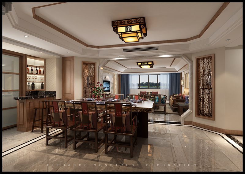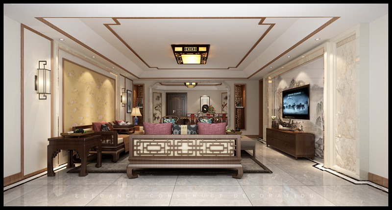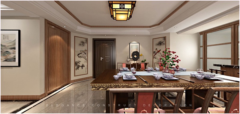 業(yè)主三口之家,風格定義為新中式,地面是大理石瓷磚,墻面壁布,配合實木線條,實木雕刻,巖石雕刻等材質。家具選用大紅酸枝材質,色澤自然,紋理清晰,典雅高貴。整體設計既保留了傳統(tǒng)中式的莊重與優(yōu)雅,又追求靈動格調素雅,體現(xiàn)了家居主人較高的審美情趣與社會地位。
