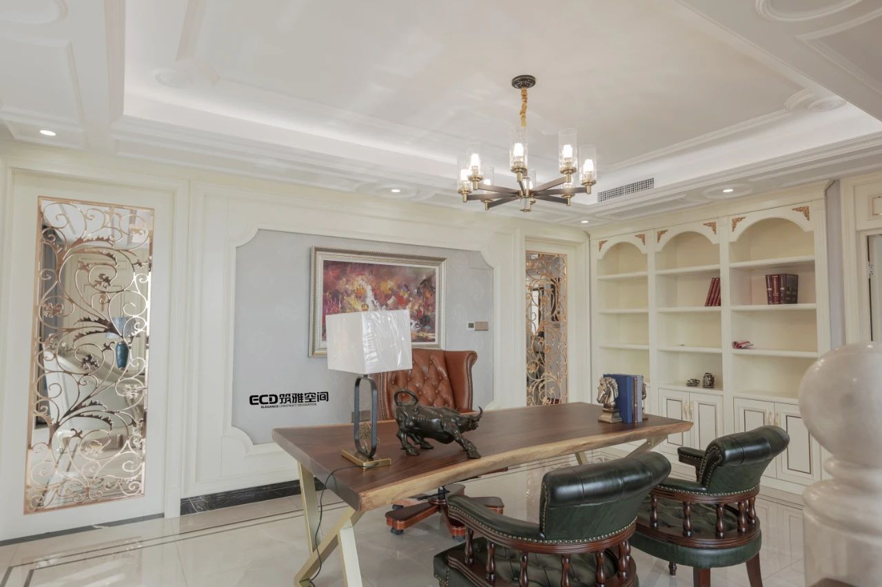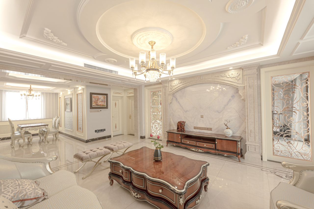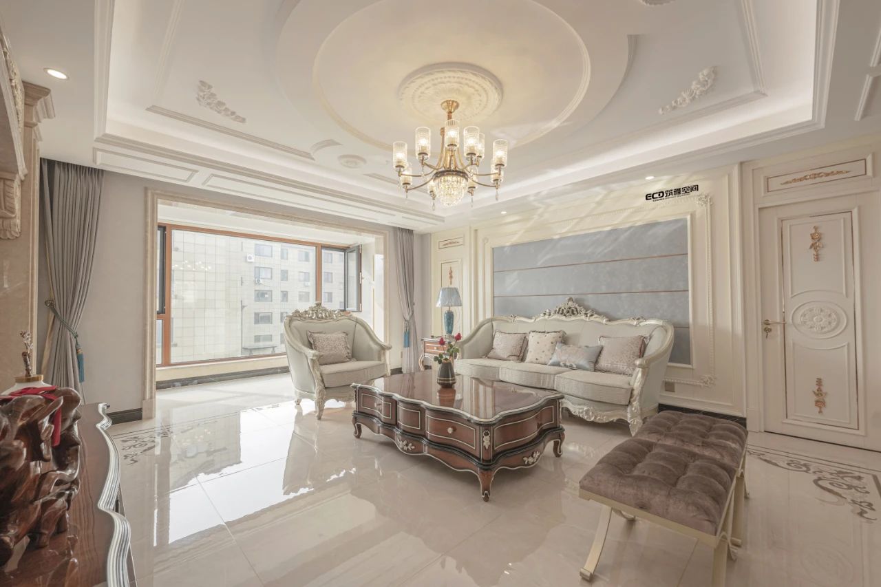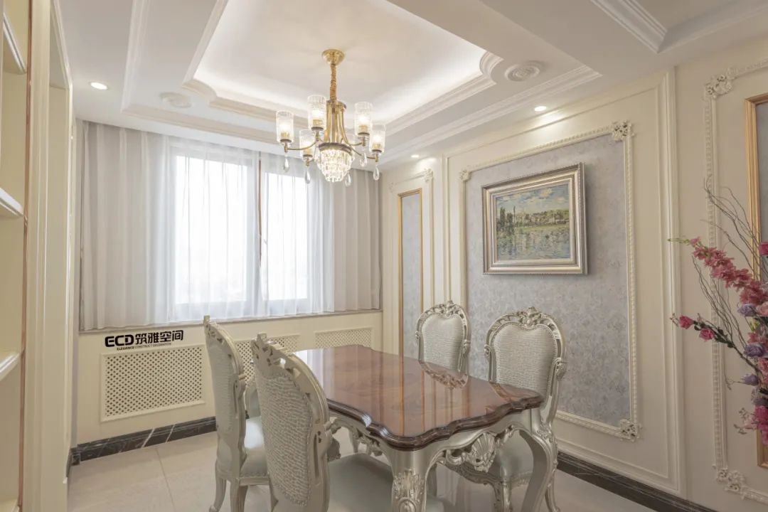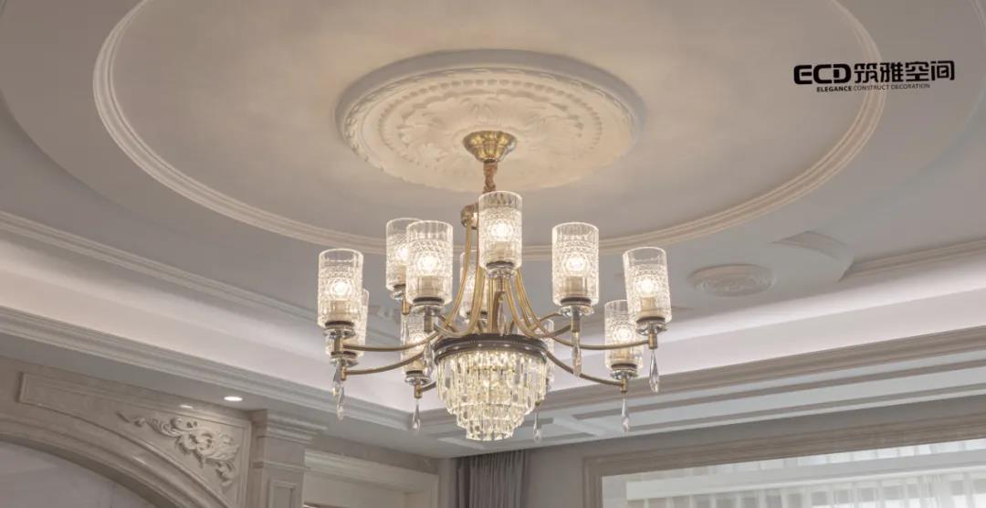 吊燈為空間賦予視覺面以及光影配置上的雙重「亮點(diǎn)」,經(jīng)典的雕花舒展出優(yōu)雅的弧度,呼應(yīng)著整體風(fēng)格上的主節(jié)奏。