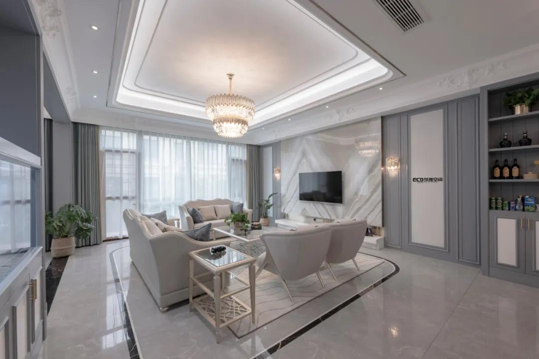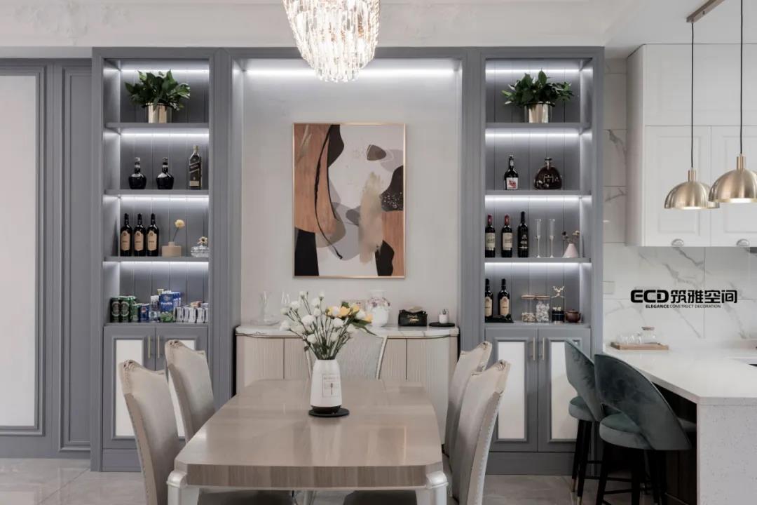 由上至下目之所及的溫柔與細(xì)膩,猶如置身于溫情舒緩的電影情節(jié)之中。簡練而典雅的家具弧度,承載著一方文化氣質(zhì),在美式風(fēng)格的加持下,寬闊的格局更顯高尚雅致。