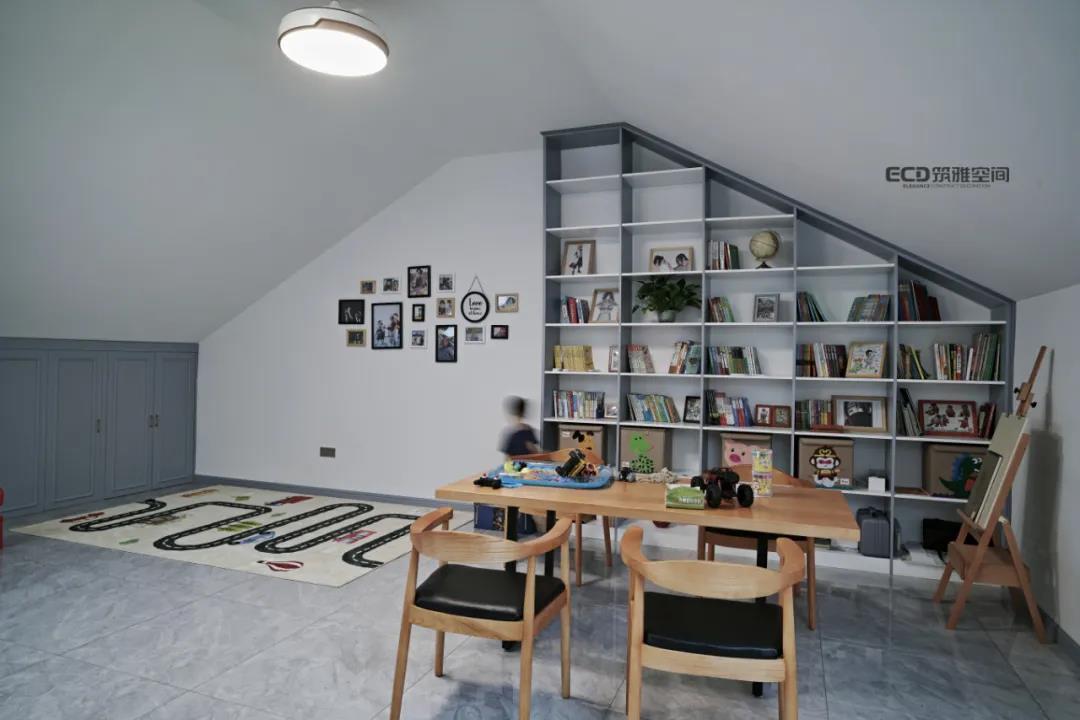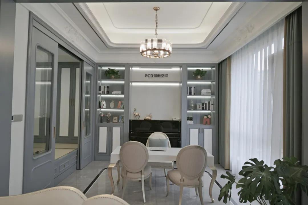 左右柜體屹立兩側(cè)呈現(xiàn)一種圍合形態(tài),構(gòu)建出一處相對(duì)獨(dú)立的鋼琴區(qū),溫馨且自在。色彩設(shè)計(jì)上設(shè)計(jì)師采用灰藍(lán)與暖灰相搭,區(qū)別于傳統(tǒng)的法式色調(diào),安靜中又透著活躍,讓孩子盡情享受一個(gè)人的練琴時(shí)光。有時(shí)候色彩不單單是一種點(diǎn)綴,更能凸顯出空間的主題與基調(diào),讓每個(gè)空間擁有不同的奧妙。