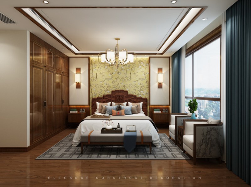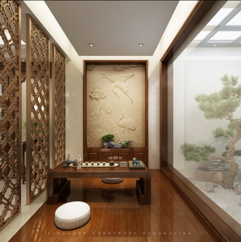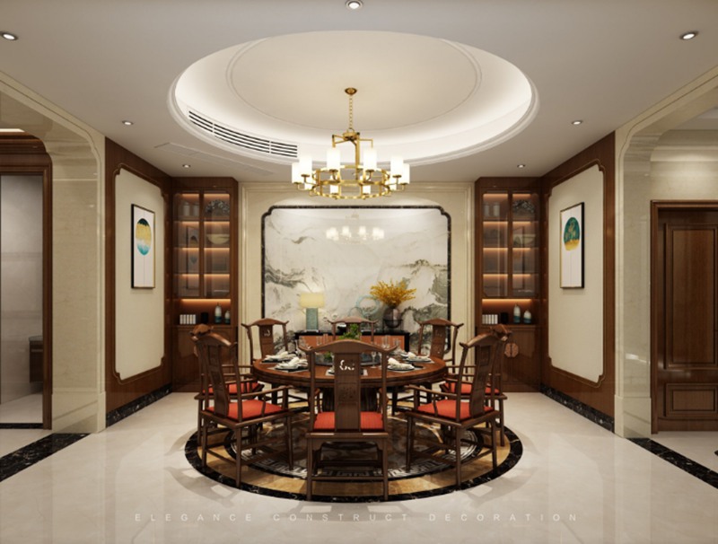 東方意蘊(yùn)大面積的山水畫背景在墻面大面積的鋪展開來,標(biāo)志的中式空間,沒有過多的張揚(yáng)。裝飾畫的介入,跳脫的顏色,抒寫出成功人士