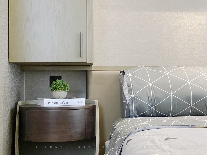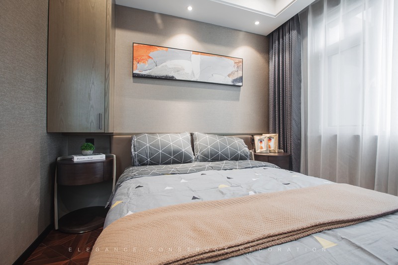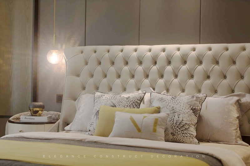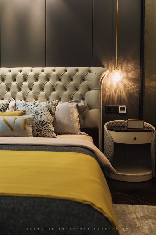 射燈以及兩盞床邊吊燈的組合,打造出極簡輕奢的高雅生活風。