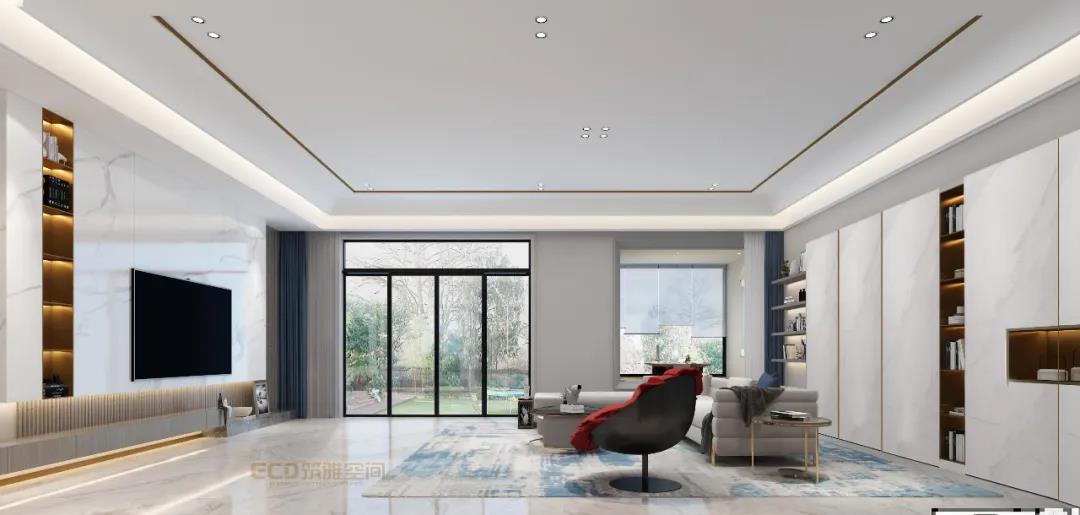 二層客廳的設計呈現(xiàn)出現(xiàn)代簡約、低調時尚的氛圍,同時又不缺乏浪漫與唯美,樂趣與儀式感。