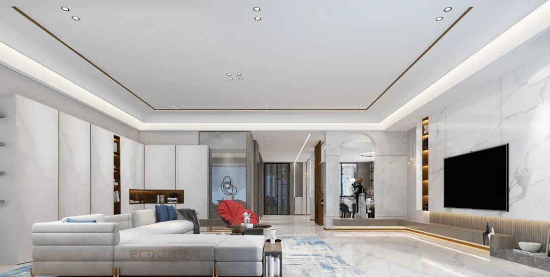 本案設計師采用典雅意式碰撞現(xiàn)代風情,意在從空間中給居住者帶來經(jīng)典與浪漫,來一場經(jīng)典與時尚的邂逅之旅。