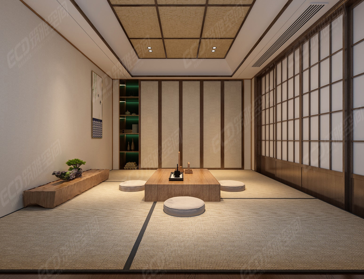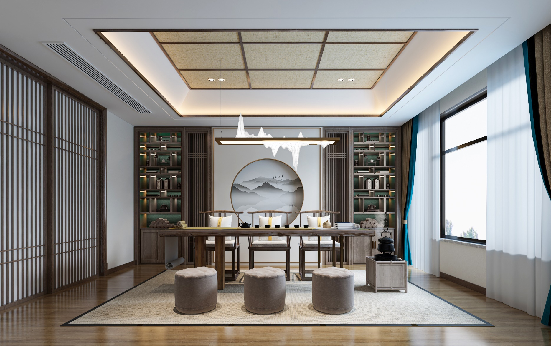 茶室空間的設(shè)計給人感覺非常的淡雅和寧靜。通過材質(zhì)和氛圍的營造,打造出優(yōu)雅大氣的東方文化空間,也展現(xiàn)出主人對田園生活的向往。