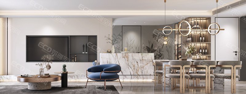 由于是度假房,叢女士一家希望可以區(qū)別于日常的生活家居,劉老師結(jié)合業(yè)主需求打造出品酒區(qū)和吧臺區(qū),讓一家人在閑暇的日子可以在此共度美好時光。