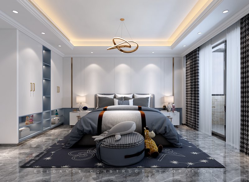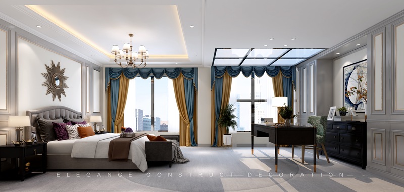 經(jīng)典的美式床融入淡淡輕奢元素,端莊高貴卻不落俗套,抱枕、單椅與窗簾,互相呼應(yīng)之余點(diǎn)綴寢居空間,