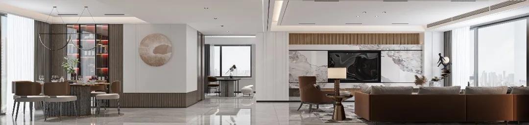 家是靈魂的舒展之地,亦是我們相處最久的老朋友。它貯藏著我們對(duì)生活的熱愛,也收納著我們對(duì)人生最真實(shí)的體驗(yàn)。本案設(shè)計(jì)以現(xiàn)代簡(jiǎn)約格調(diào)為主,通過質(zhì)感棕、高級(jí)灰等大地色系的加入,讓空間根植出自然的蓬勃之力。
