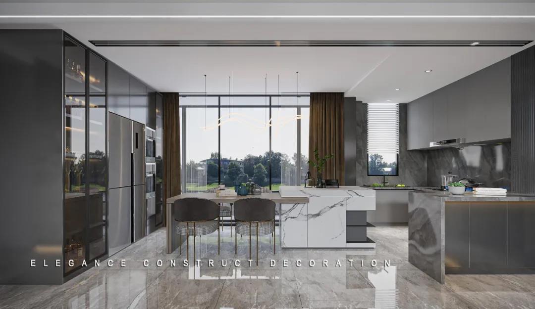 U形的廚房和餐桌一體化島臺(tái)設(shè)計(jì),舒適的動(dòng)線和寬敞的操作空間,滿足一家人對(duì)美食的全部幻想。大面積的窗戶,保證最大通風(fēng)采光度的同時(shí),又能為居住者帶來更好的生活體驗(yàn)。