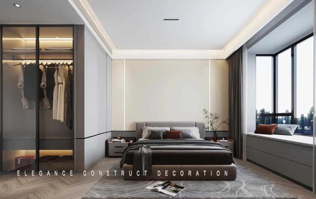 臥室的設(shè)計(jì),遵循“少即是多”的裝飾原則。軟裝和燈光的配合相得益彰,營(yíng)造一個(gè)舒緩靜謐的睡眠環(huán)境。主臥的收納柜采用磨砂材質(zhì),給予居住者更強(qiáng)的舒適感和安全感。
