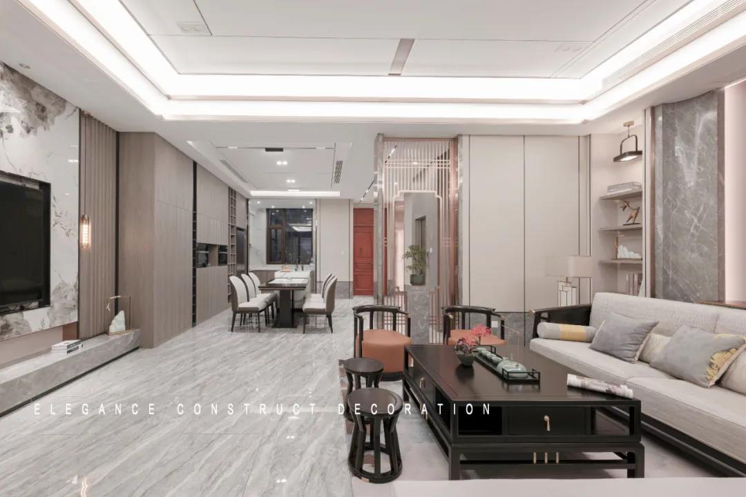 開放的空間格局,每一個(gè)空間都恰到好處,大大的落地窗引入暖暖的陽光,加長的餐桌島臺(tái),一家人在這里吃飯,喝茶,暢聊,精致的生活情愫于曼妙的光影間流淌,“家”的溫度盡情濃縮于此。
