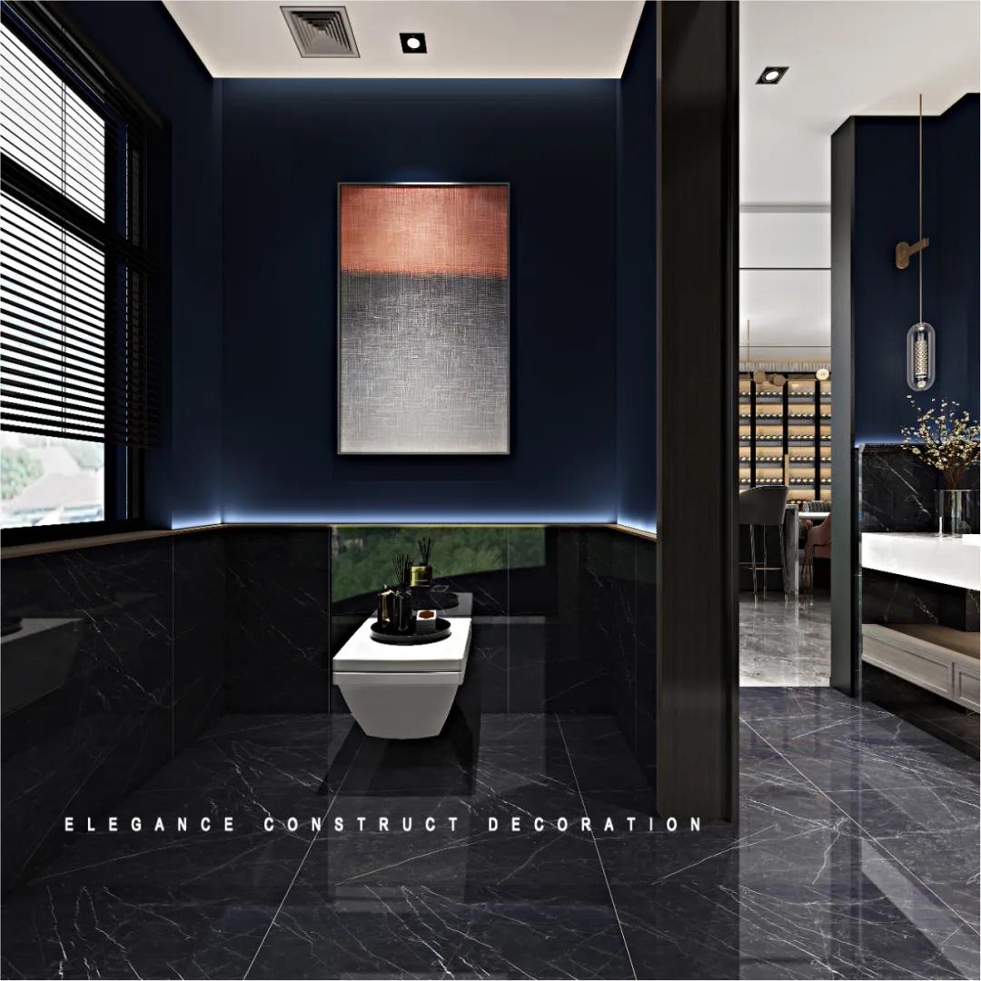 衛(wèi)生間延續(xù)了客廳整體的黑色色調(diào),用燈帶設(shè)計(jì)分割出空間的層次,藝術(shù)感的掛畫為空間增添穩(wěn)重時(shí)尚的空間質(zhì)感。