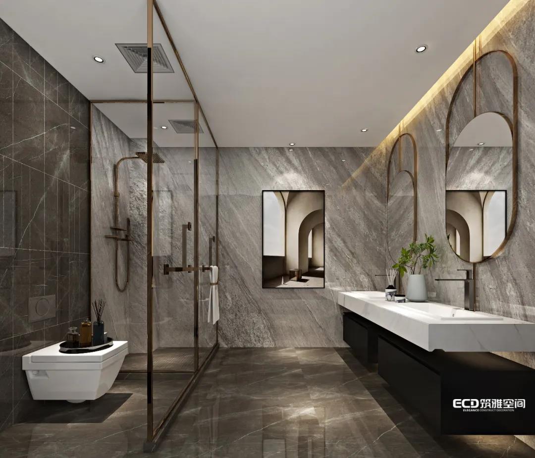 衛(wèi)生間運(yùn)用金屬線條與大理石材質(zhì)來凸顯高貴品質(zhì)感,玻璃設(shè)計(jì)輕奢典雅的拱形,更具藝術(shù)感。干區(qū)與濕區(qū)劃分明確,沐浴、如廁、洗漱等在同一時(shí)間進(jìn)行,卻又互不干擾。