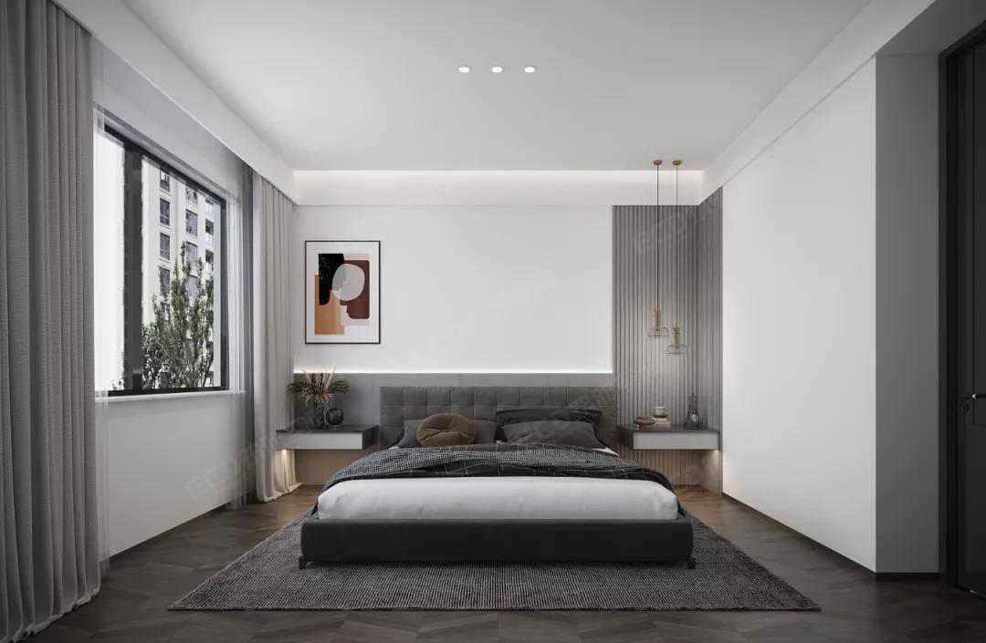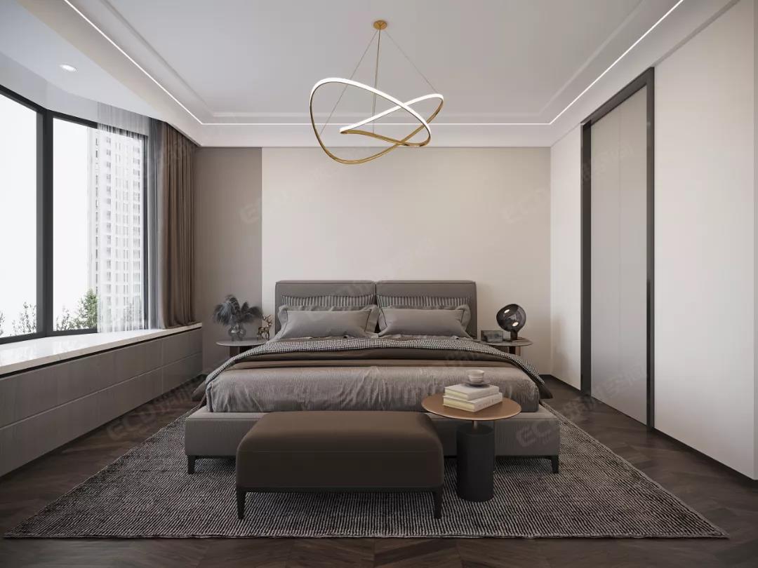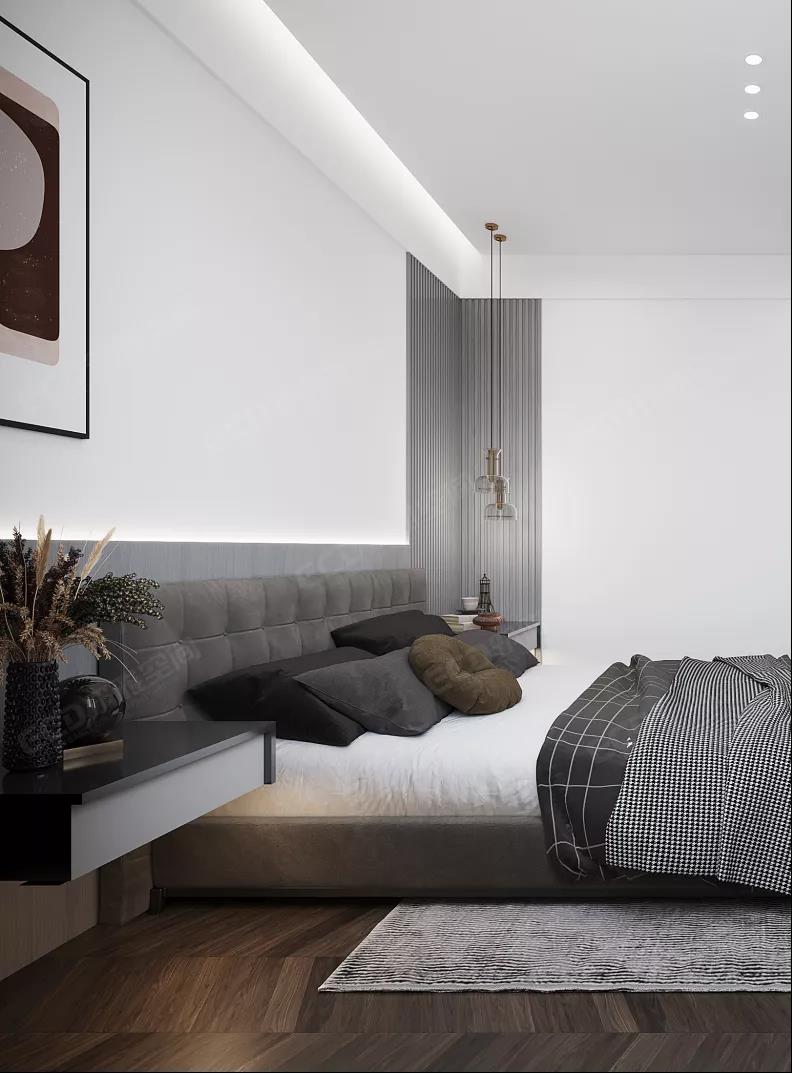 臥室靜謐的色調(diào)搭配干練的線條,摒棄傳統(tǒng)繁雜風格,背景畫與金屬燈飾的巧妙混搭,給人簡約時尚且不失溫馨舒適的感覺,豐富整個空間的層次感。