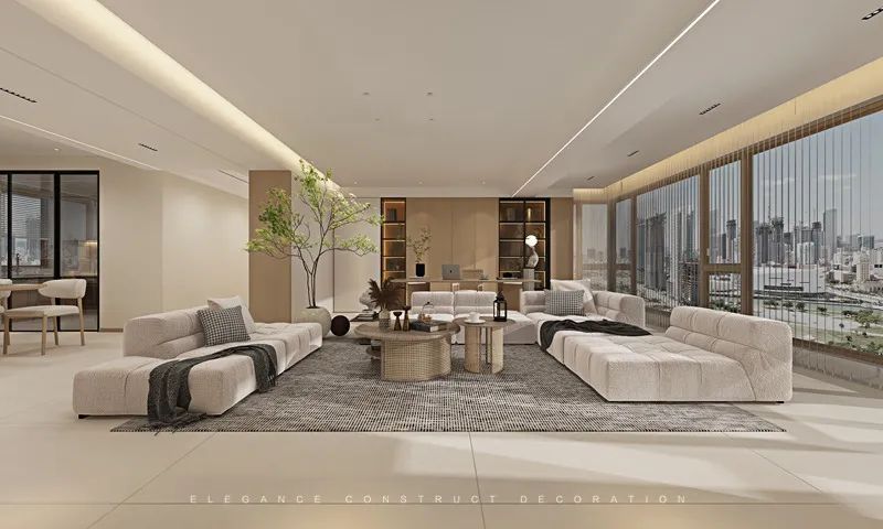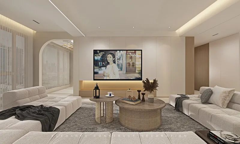 客廳陽臺采用大面積落地玻璃,打造一方休憩與會客的藝術港灣。在陽光的照耀下,使客廳采光充足、沉靜、柔和,溫潤了整個空間的溫度,提升了空間舒適感。