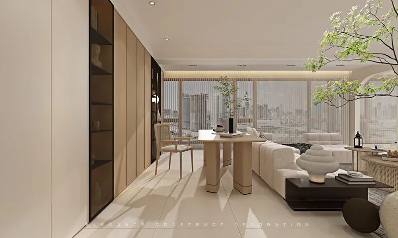 素雅清新的色調兼顧空間功能與收納,為柔和優雅的靜態空間增添了律動感。讓人在步入空間的同時,擁有溫馨舒適的感覺。