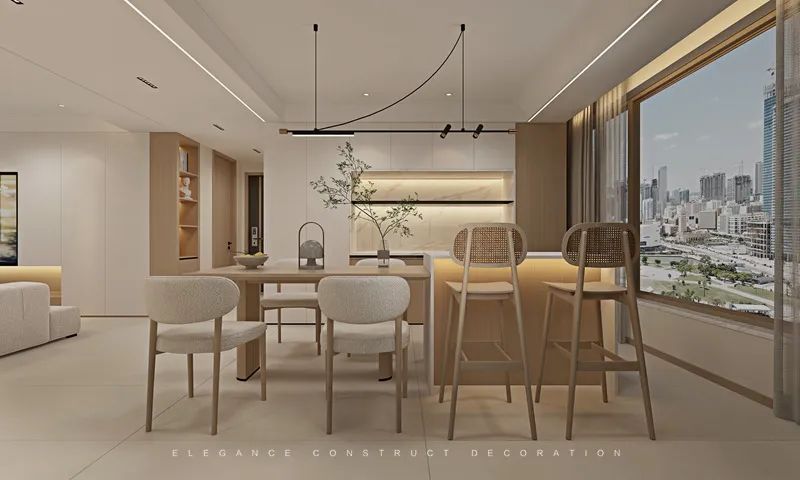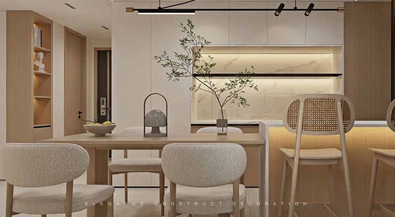 兼顧實用性與美觀性的餐廳布局,摒棄傳統隔斷。以開敞式大平層的客餐廳設計,避免視覺上的壓迫感,給人心靈以釋放。