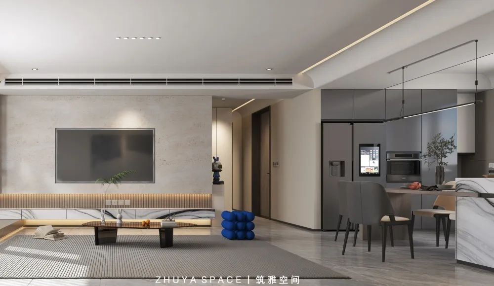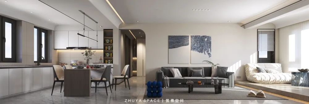 開放一體的客餐廳,“留白”的藝術(shù)理念,堅持去掉多余的元素,從不刻意去填滿生活,營造出空靈不俗氣的高級空間。