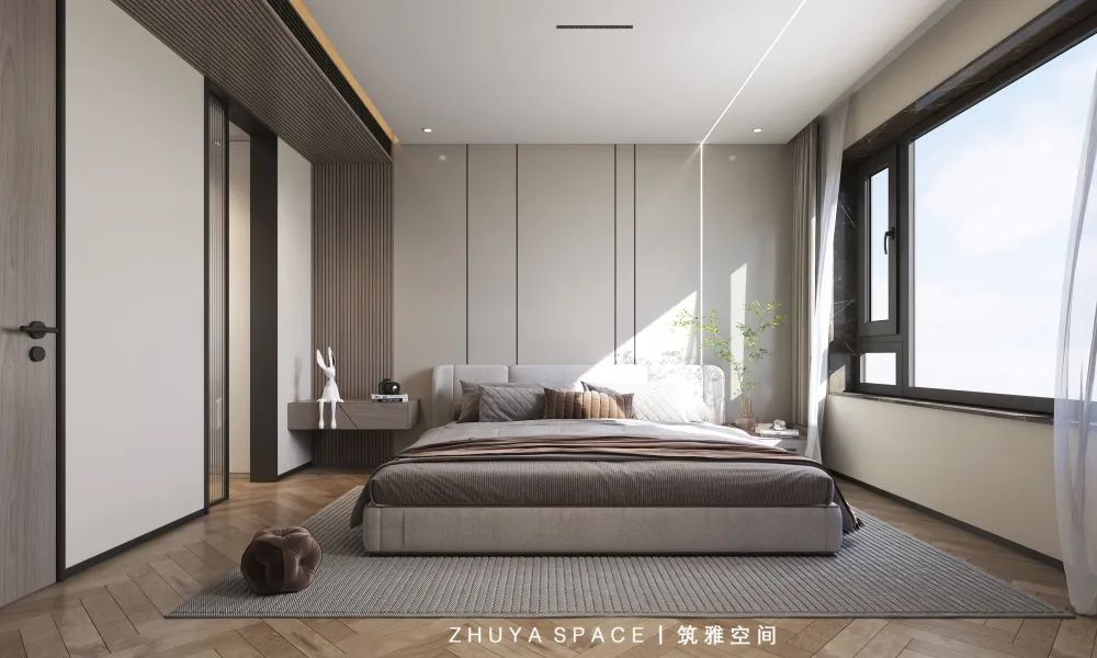臥室優(yōu)化了居住的功能性與舒適性,簡潔明亮如宮殿版的恢弘氣勢,棕木色地板,凸顯溫潤的居家氣質(zhì)。