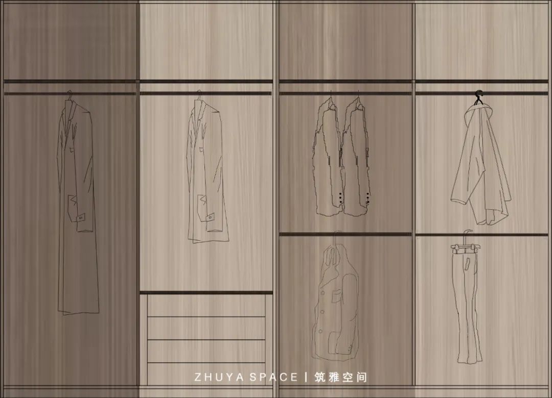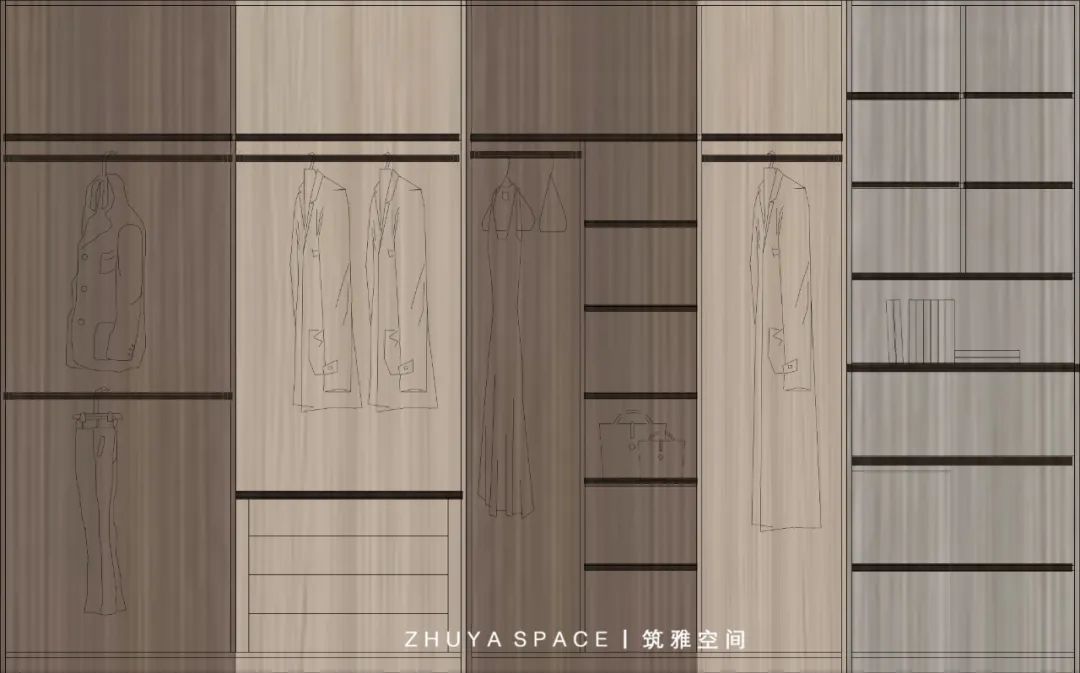 所以在家裝之前,劉老師就將衣帽間作為一個特定的空間來考慮,在收納設(shè)計方面,以最好的設(shè)置來完善女業(yè)主的收納需求,方便業(yè)主的使用。