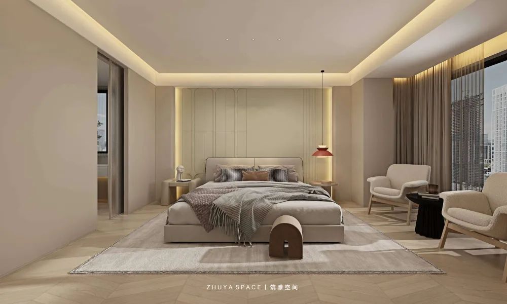臥室延續(xù)全屋空間門板色調(diào),給人優(yōu)雅浪漫的溫馨享受,打造極具私密感的多功能睡眠空間。