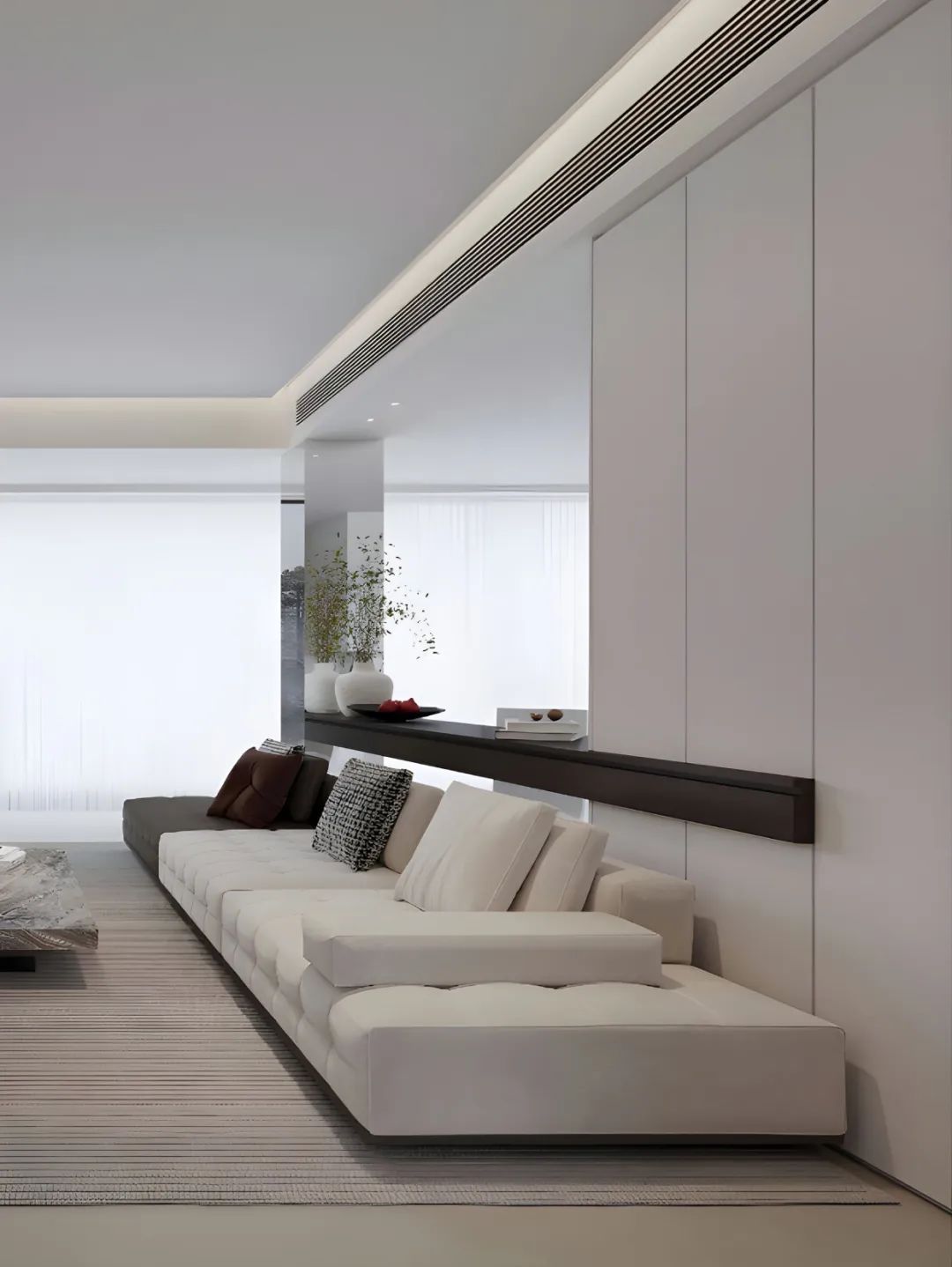 當(dāng)初決定裝修成極簡風(fēng),真的是太明智了!沒有花里胡哨的裝飾,簡單又大氣。客廳的大白墻,配上無主燈設(shè)計(jì),